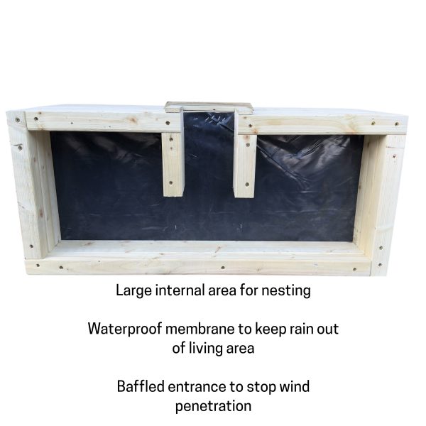 This is the perfect hedgehog shelter for the cold months, with a baffled entrance to prevent wind and rain directly affecting the hibernating animals. The hedgehogs have the full internal base of the planter to use to protect themselves; the bigger the planter, the larger the space.
